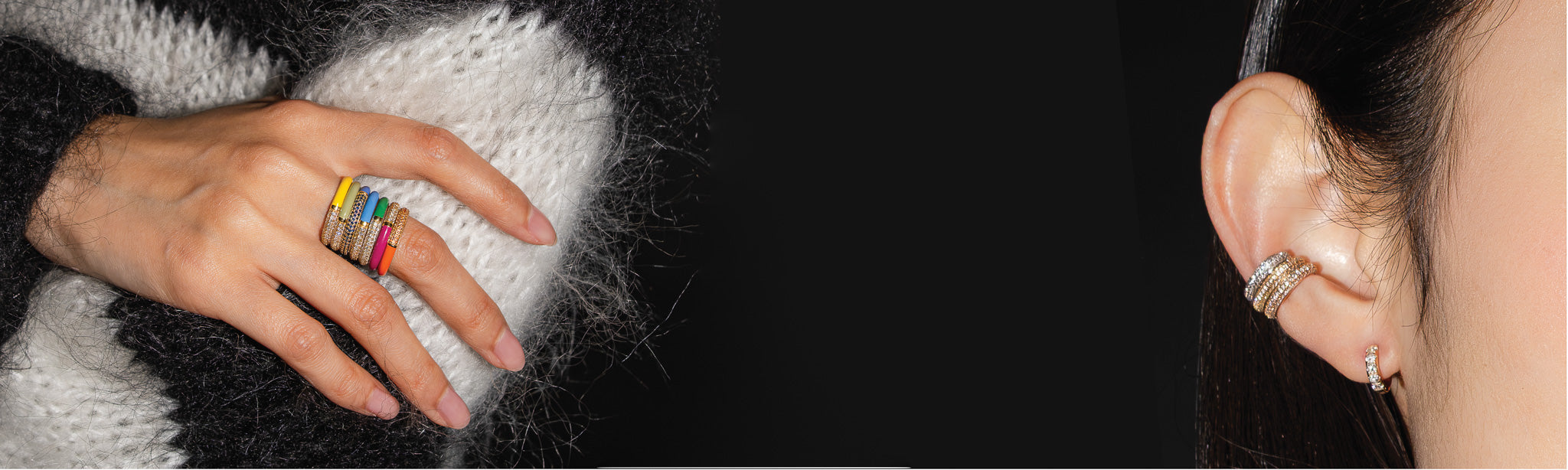 The Split Pavé Diamond + Enamel Stacking Rings, Neon Enamel
